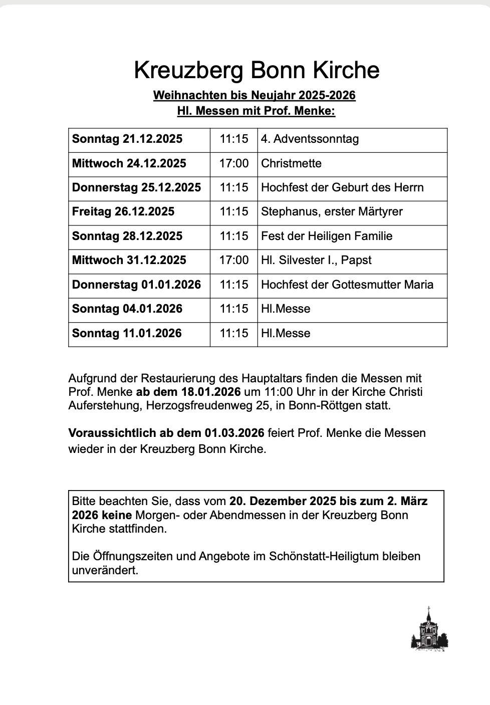 Sunday, 04.01.2026 11:15 a.m. Holy Mass